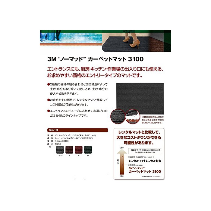원본상품명: 3M 玄?マット ノ?マッド カ?ペットマット 3100 グレ? N3 GRA 900X1500T