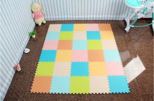 -. Feature : Material: Non-toxic tasteless plastic material. / Size: 12*12 inches and 0.55-inch Thickness. / Easy to clean with wet dishcloth. / Bright P.R.Imary colors help kids identity colors and better kid's visual sensory development.(For ages 3 and up) / Both sides can be used to play,gives baby enough secure.