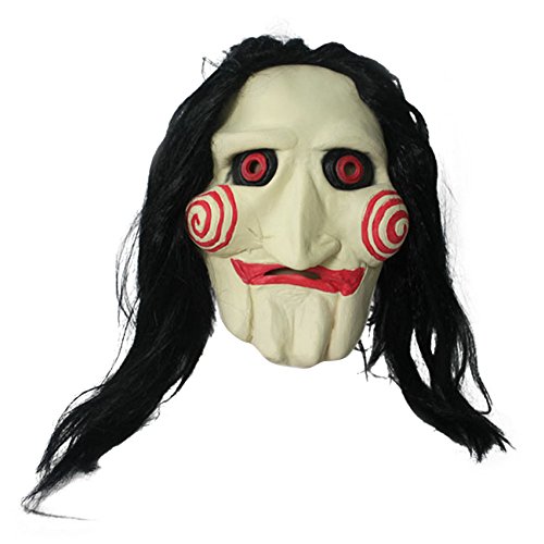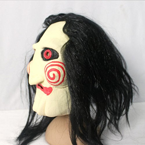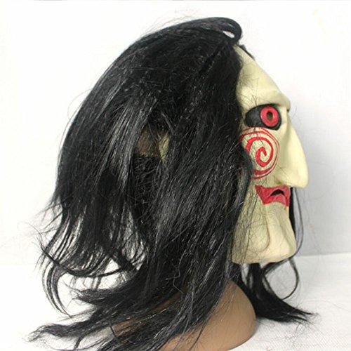 -. Binding : Apparel -. Brand : MissFox -. Department : mens -. Feature : Perfect for Masquerade Parties,Gifts,Costume Parties,Halloween / Wig is free / Fits most adult heads / If you are allergic to latex, don't wear this / This product normally has a smelling of latex,you can put it on the Ventilation place for one day -. ProductGroup : Apparel -. ProductTypeName : ACCESSORY -. Title : MissFox Halloween Chainsaw Massacre Creepy Scary Cosplay Mask