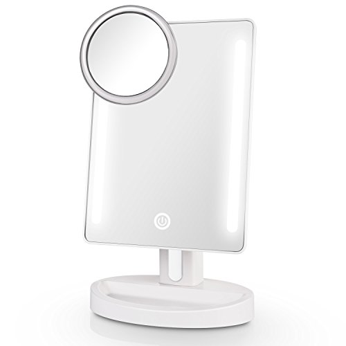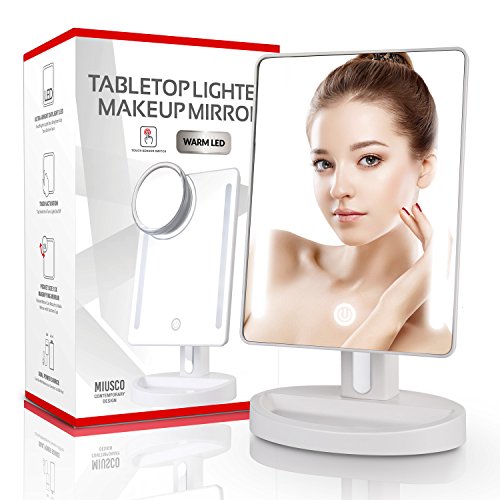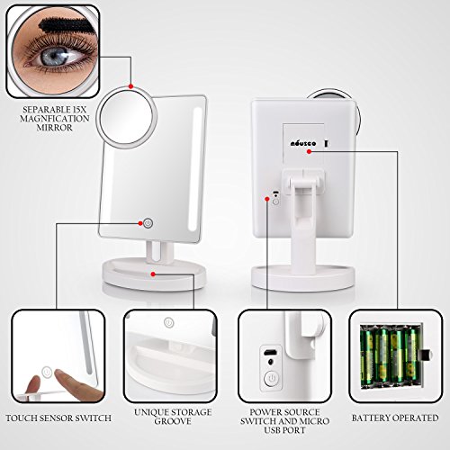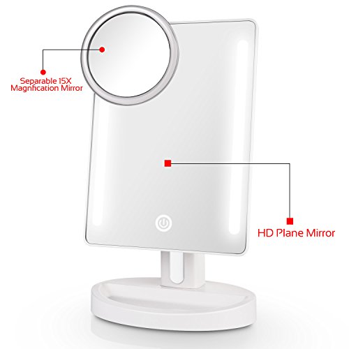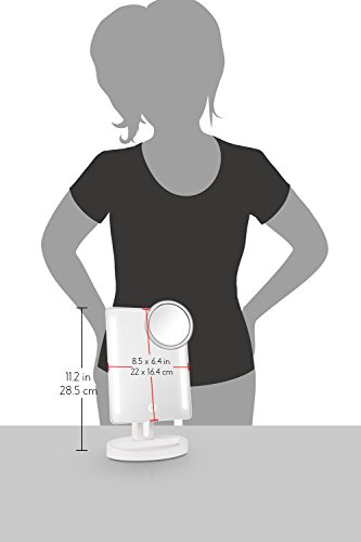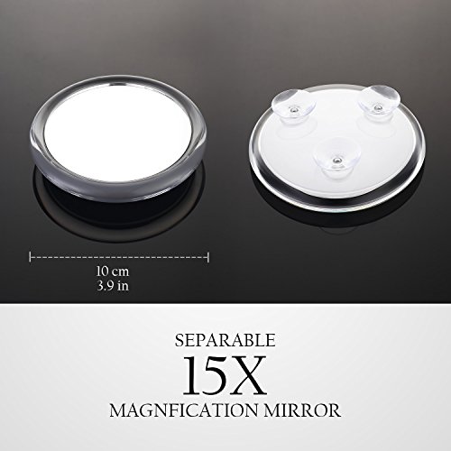 Miusco Lighted Makeup Mirror with 15X Magnification Suction Cup Pocket Mirror, Rectangle, USB and Battery Operated, White