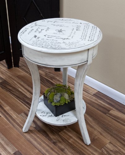 The functional design of this side table will simply amaze you. It has legs that sweep in a gentle "S" curve and end in a tapered flare. It features a 18.25" rounded top with a simple apron, and a lower shelf for plants and collectibles. It comes in our Vintage Cream Finish.Feature