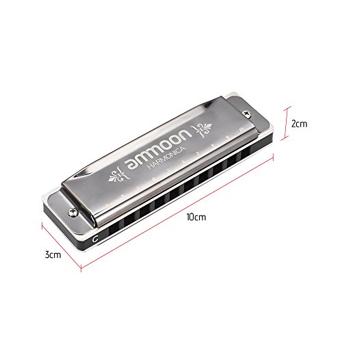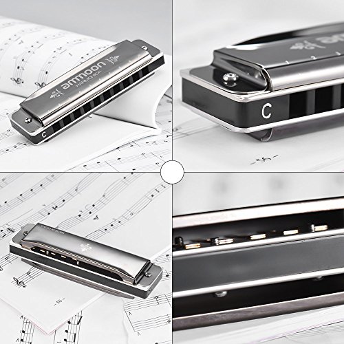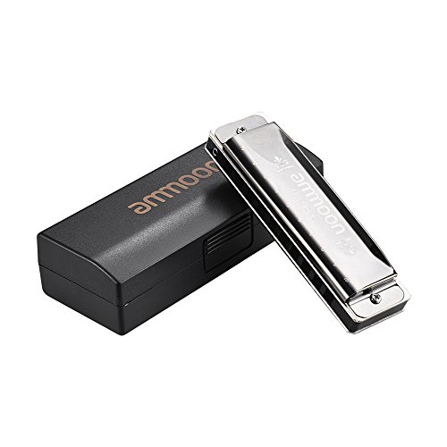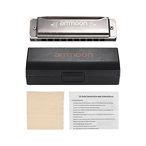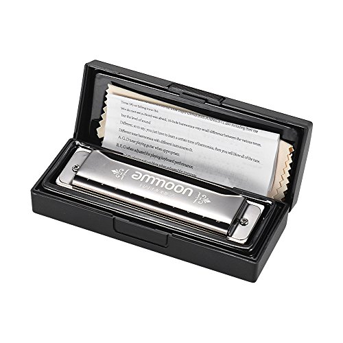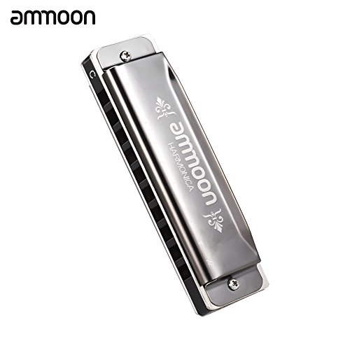 Studio : ammoon Publisher : ammoon Product Description Features: Exquisite 10 holes 20 tone harmonica, key of C. Gorgeous harmonica delivers beautiful and rich sound, can play various music type such as blues, rock and jazz etc. Environmental protection ABS frets, high sensitive phosphor bronze sound spring. 1.2mm Copper cover plate, gold mirror processing appearance, elegant and exquisite pattern. Great sound for any professionals and skilled players.