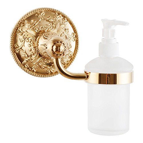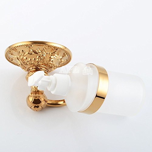 -. Title : Liquid Soap Dispenser Holder Solid Brass Exquisite Carved Bathroom Accessories Titanium Gold APL-6315