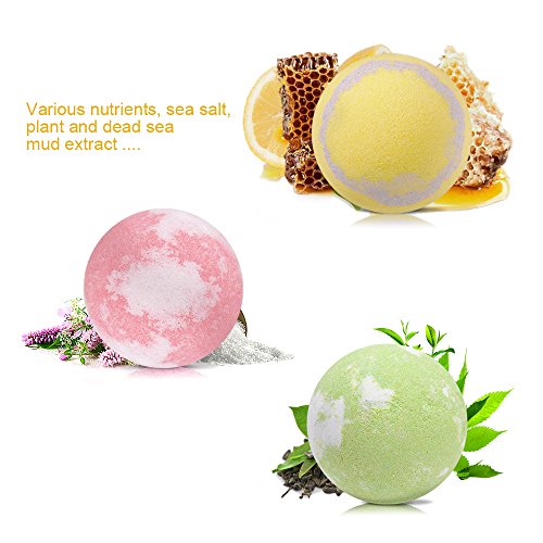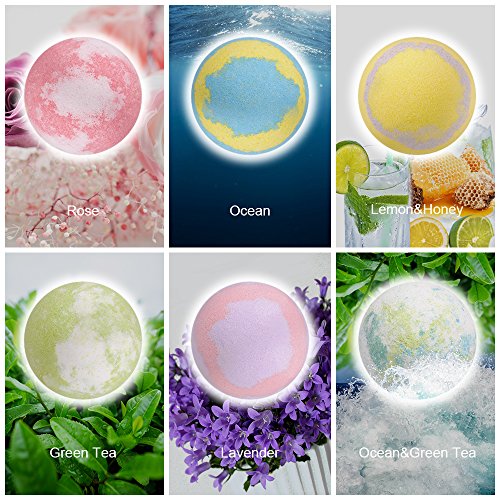 - GOOD DESIGN & PERFCT PERFUME :Uniquely handcrafted bath bombs. The bath bomb gift set contains 6 amazing scents: Lavender, Rose, Ocean, Green Tea,Lemon&Honey,Ocean&Green Tea.