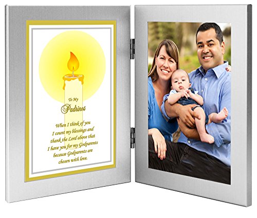 -. Binding : Kitchen -. Brand : Poetry Gifts -. Color : Silver -. Feature : Let special Godparents know just how special they are with this Padrinos gift from their Godchild / Two attached 4x6 inch frames - left frame contains p - right frame has area for a 4x6 inch photo / Personalize this gift by inserting a standard 4x6 photo or part of any larger photo / Brushed silver metal frame with black velour backing - tabletop display / P appears in Product Description -. IsAdultProduct : 0 -. Label : Poetry Gifts -. Manufacturer : Poetry Gifts -. Model : poetrygifts-70-002 -. MPN : poetrygifts-70-002 -. PackageQuantity : 1 -. PartNumber : poetrygifts-70-002 -. ProductGroup : Baby Product -. ProductTypeName : HOME -. Publisher : Poetry Gifts -. Size : double 4x6 frames -. Studio : Poetry Gifts -. Title : Godparents Gift "To My Padrinos" From Godchild - Baptism, Christening or Christmas Gift - Add Photo