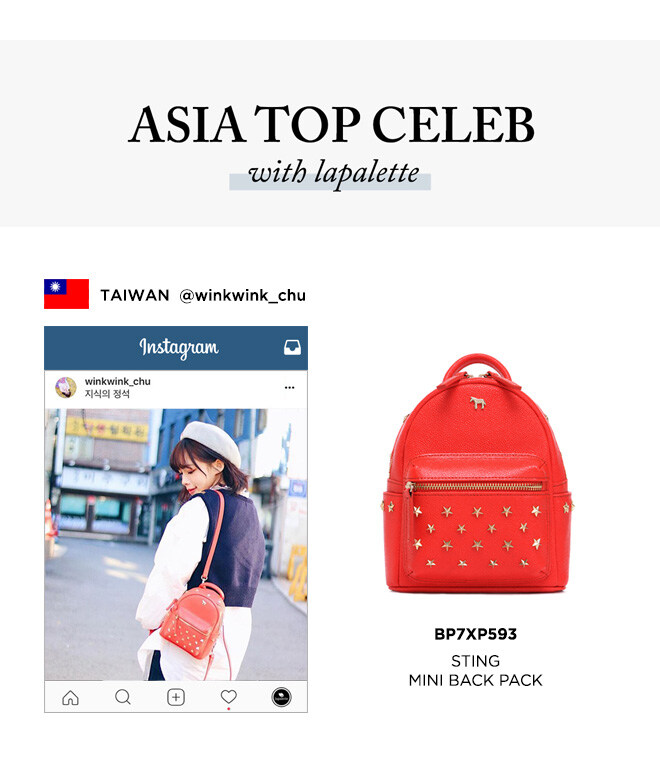 lapalette released "STING LINE" which is with mini star studs in spakling cavior embossed leather. Micro mini backpack with star studs on the pocket and side part in rock-chic mood.Easy to various styling with the strap that can be detach and be devided two to adjust the length. Perfect unique point item in casual and daily outfits.