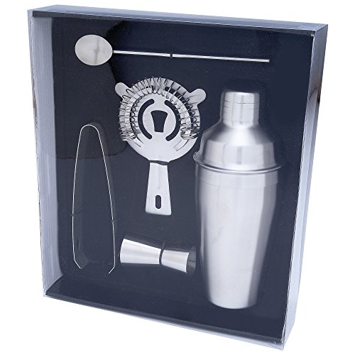 - This five piece stainless set contains all the tools needed to mix martinis with ease or concoct Cosmopolitans on a whim.