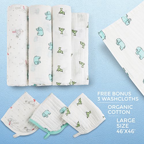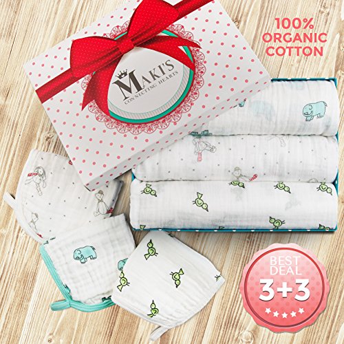-. Feature : ✔ 100% INCOMPARABLY SOFT, ORGANIC COTTON: This high quality new-born baby swaddle blankets set includes 3 muslin baby wrap blankets which are made of 100% breathable, organic cotton and which promise to provide your babies' sensitive skin with a soft, delicate touch, keeping them comfortable and relaxed at all times. / ✔ LARGE SIZE THAT PROVIDES UNMATCHED VERSATILITY: The Makis Connecting Hearts unisex swaddle receiving blankets feature a large, 46'x46' size, allowing you to use them in a variety of ways. Apart from providing your baby with a warm, comfortable embrace, they can be used as changing mats, stroller sunshade and nursing covers, burp clothes and more! / ✔ NICE PACKAGING THAT MAKES IT THE BEST BABY SHOWER GIFT: This must have new-born baby boy and baby girl swaddling blanket and washcloth set will arrive nicely packaged in your hands. This means that apart from making it yours, you can also offer it as a gift to new parents, putting a big smile on their face! / ✔ 3 BONUS COTTON BABY WASHCLOTHS: Along with the 3 muslin organic swaddling blankets, you will receive 3 baby washcloths at no additional charge! The 100% organic cotton washcloths feature 4 layers and they can be used as drooling aprons and soft face towels, while they can also be a great alternative to hard and unhygienic sponges. / ✔ ENTIRELY RISK FREE PURCHASE: Keeping you satisfied and providing you with the friendliest customer service is our P.R.Iority. This is why we offer you a 30 days money back guarantee as well as a 1 year product warranty, assuring you that making this swaddle receiving blankets set yours is entirely risk free.