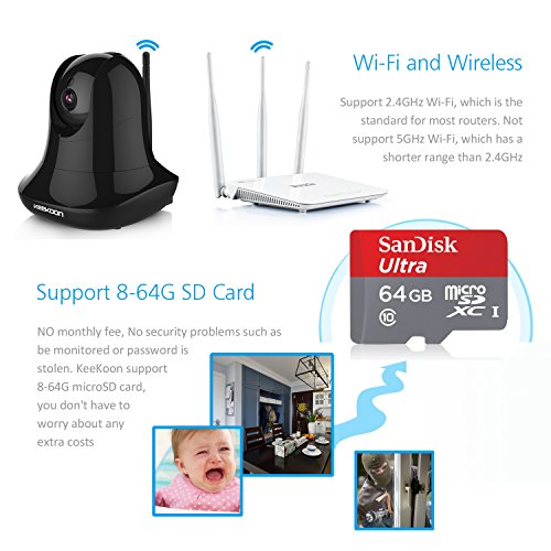 NO SECURITY PROBLEMS: NO monthly fee, NO security problems such as be monitored or password is stolen. KeeKoon support 8-64G microSD card, don't have to worry about any extra costs. One-year warranty. If you notice any defects in our camera, get full refund or new replacement within 24 hours!.