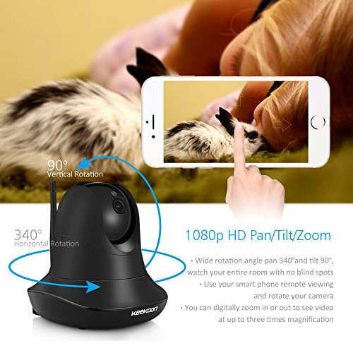 KEEKOON HD 1080P Wireless IP Camera WiFi Baby Pet Monitor Built In Microphone Pan/Tilt/Zoom Home Security Surveillance Camera Support 64 GB SD Card HD Night Vision Two-Way Audio (Black)
