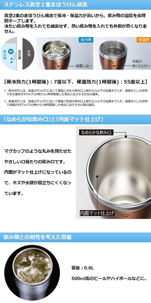 | 仕様 | 実容量:0.6L 保温効力(1時間後):55度以上 保冷効力(1時間後):7度以下 食洗機・乾燥機使用不可 |