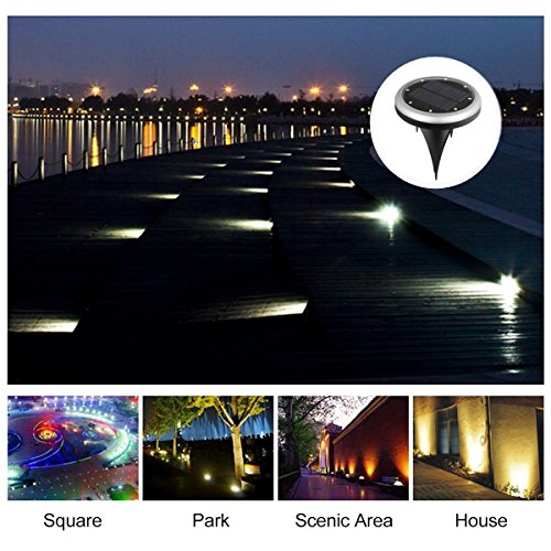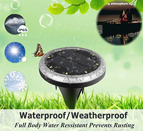 - ✔HIGHER POWER EFFICIENCY:8 LED Solar powered ground light are powered by efficient solar panels with no wires charge, saving electricity costs and being environmentally friendly. 8 led lights creat wider, brighter lighting.