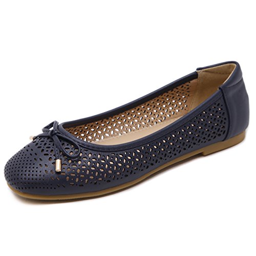 -. Binding : Apparel -. Brand : Meeshine -. Color : Blue -. Department : womens -. Feature : Type: Ballet Flats; Upper Material: Imported Leather / Easy to slip on/off; non-slip rubber sole / The cushioned Insole and rubber sole offer support flexibility and comfort. / Fashion Trend: Sexy hollow upper design with bow decorated. / These cute summer ballerina flats are perfect for wedding, party, work or daily wear. -. ProductGroup : Shoes -. ProductTypeName : SHOES -. Title : Meeshine Women Dress Soft Bow Cut Perforated Slip On Ballerina Flat Shoes