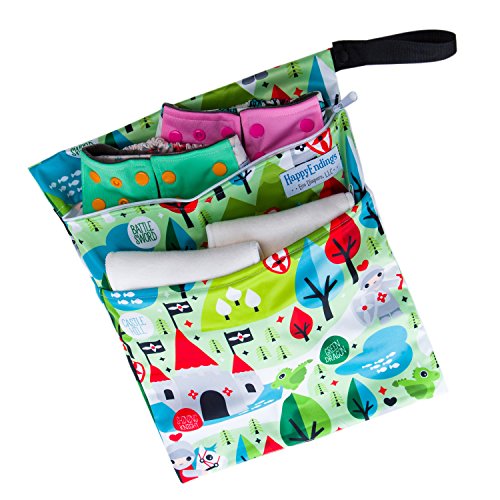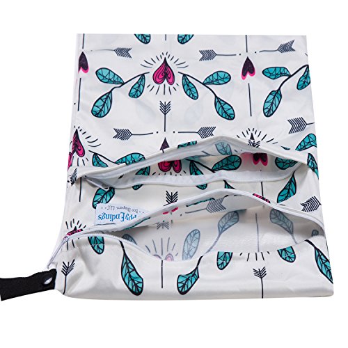 • Includes: 2 metal zippered compartments for keeping wet and dry items separate. The handle is made of sturdy nylon with a snap for easy attachment to a knob, stroller, or bag. Measures 14 in. long by 11.5in. wide -the perfect compact diaper bag size for a long day out.