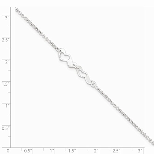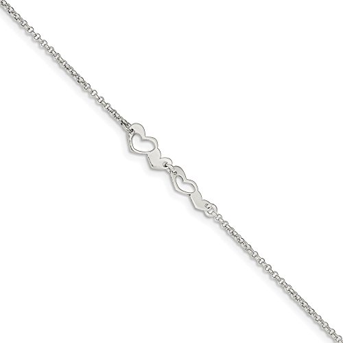 Solid 925 Sterling Silver Polished with 1in. Ext. Heart Anklet 9"