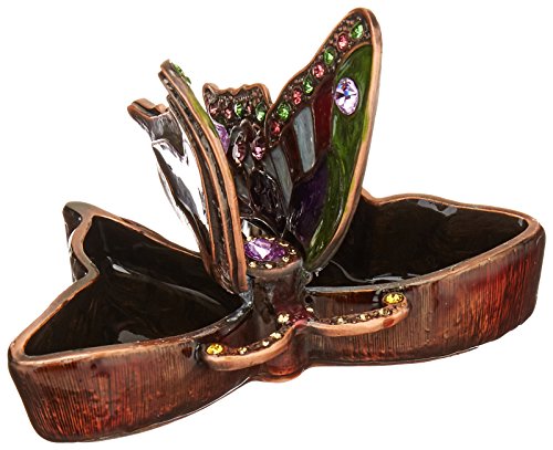 Ciel Collectables 1013638B Butterfly Jeweled Green Enamel Trinket Box, 4.25" x 0.50" x 2.50"