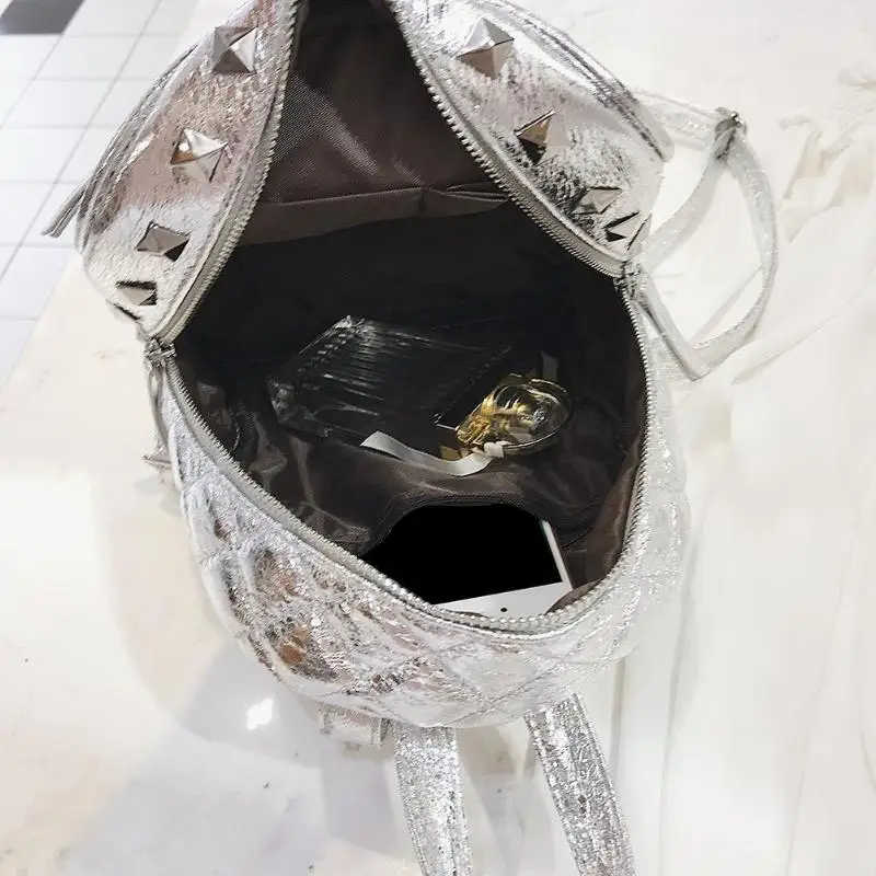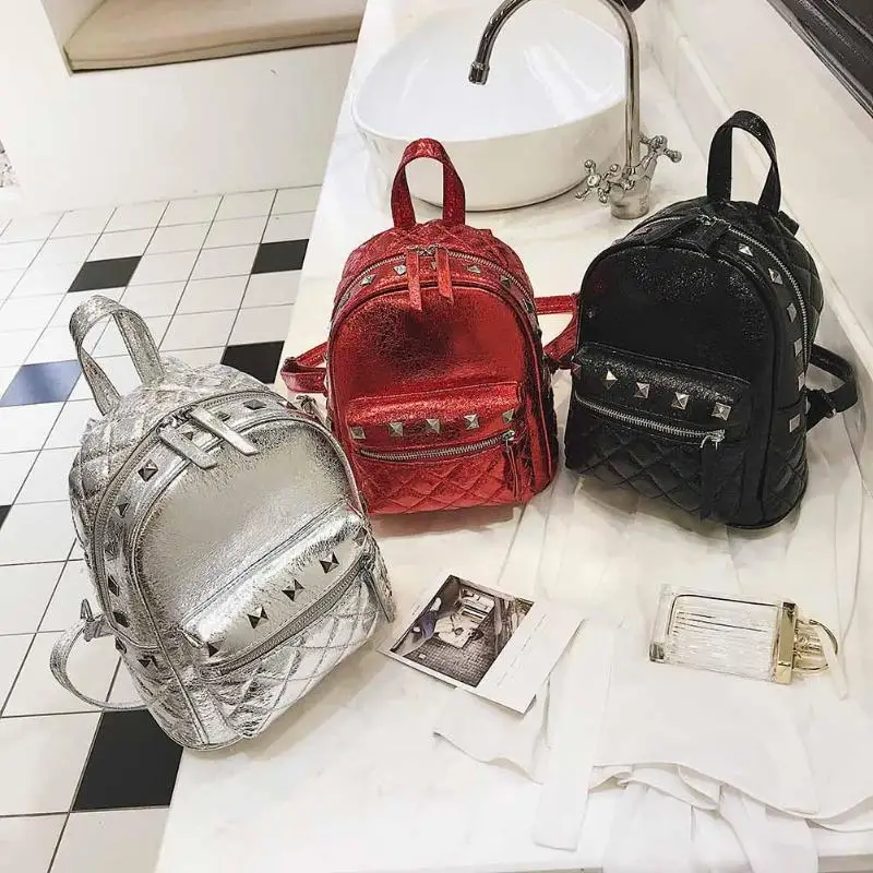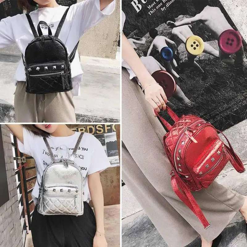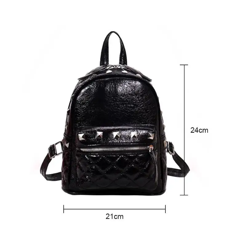 Street Women PU Leather Glitter Rivets Shoulder Bags Girls Mini Zipper Casual Schoolbags Backpacks Features: The fashion version of the type:Concise but not simple, high-grade PU material,extraordinary quality; Exquisite design: Generous, simple fashion; Easy to carry: Breakthrough cumbersome,Handy convenient. Specifications: Material: PU Size: 24 X 21 X 11 cm/9.45 X 8.26 X 4.34" Use: Shoulder bag,Backpack Type: Vertical square Style: Street Casual Open way: Zipper Color: Black,Silver,Red Notes: 1. Due to the different monitor and light effect, the actual color of the item might be slightly different from the color showed on the pictures. Thank you! 2. Please allow 1-3cm measuring deviation due to manual measurement. 1 X Backpack |