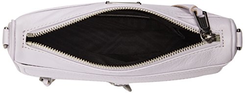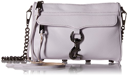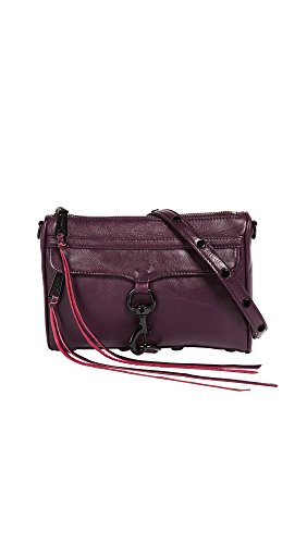 Small leather bag featuring dog-leash clasp, fringe zipper pulls, and footed bottom