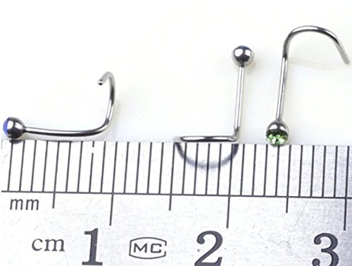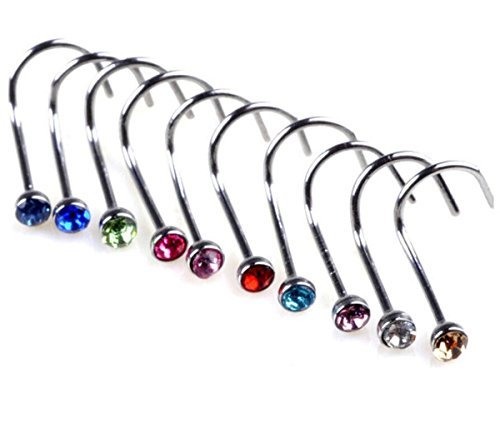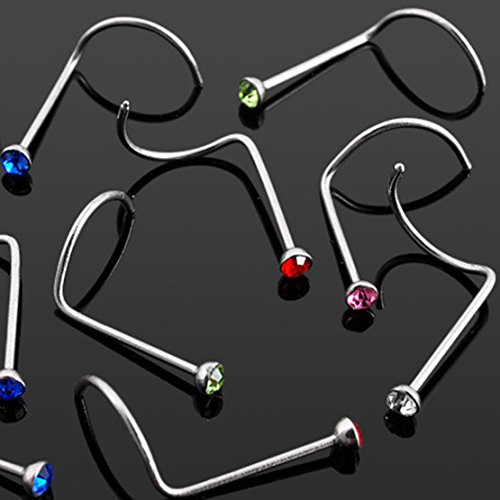 -. Feature : Colorful Rhinestone Steel Screw Nose Rings Studs Bar Pin Piercing Jewelry nose stud indian nose pin / Simple design with muticolor shining rhinestone. / Material: Stainless steel and rhinestone Nose Stud Pin,Stainless steel and antiallergy, safe to use. / Nose Wearable Length: Approx 7mm from gem to bend.Bar circumference:0.75mm//22gauge.Rhinestone diameter:2mm / Package:30 Pcs set nose rings
