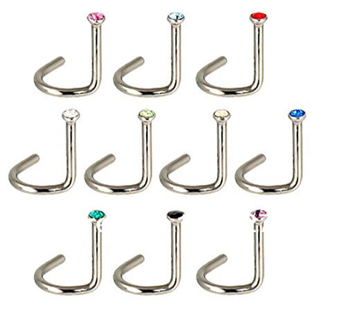 -. Title : Freedi 30pcs Nose Studs Ring Stainless Steel 22 Gauge Rhinestone Body Piercing Jewelry S Shape