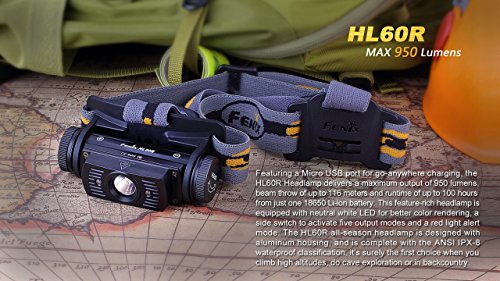 Fenix HL60R 950 Lumen USB rechargeable CREE XM-L2 T6 LED Headlamp, Fenix 18650 rechargeable Li-ion battery with 2 X EdisonBright CR123A back-up batteries bundle