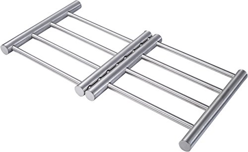 Studio : Pro Chef Kitchen Tools Publisher : Pro Chef Kitchen Tools Binding : Kitchen Product Description Want to have a home skillet meal? This pan holder fulfills the requirement and its extension capabilities provide a setting for two smaller pans. When all the meals and cooking are done, this trivet can serve as a small drying rack for cups, lids, and flatware.It can even be used for tasks outside of the kitchen. Small crafts that require being set aside to dry have a spot on this holder and away from foot traffic. Protecting tables and counters from hot plates, pots, pans, and trays requires a quality holder that will not warp or bend under extreme temperatures. Look no further than this stainless steel trivet. Its compact design is good for storage and versatile enough to accommodate different cooking vessels of varying sizes. The solid construction of it keeps the trivet from moving or being impacted by the weight and temperature of the item it is holding up. Use it to rest a tray or two of cookies straight from the oven. With more than one expandable trivet, large baking or cooking projects can be tackled and put on any flat surface without fear of ruining it. Larger baked items such as loafs of bread can benefit from a trivet hot plate like this one when utilized as a cooling rack. It is also handy when buffet style meals are involved. The trivet elevates the food to keep tables safe while keeping the vessel at a good height for guests. Let family members serve themselves soups and stews at daily meals without having to get up. Plates of fresh rolls or muffins can sit on the trivet too for a convenient dining experience. Crock pots and other large food containers are able to take advantage of the expandable trivet. This is beneficial for kitchens where large items have to be moved out of the way to complete other tasks. The stainless steel material holds up well under strain and can withstand wear associated with frequent use. 0
