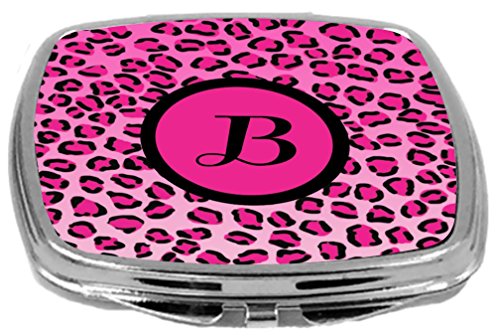 Rikki Knight Compact Mirror, Letter b Initial Hot Pink Leopard Print