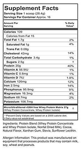PROTEIN MILKSHAKE LOW CARB PROTEIN POWDER - CHOCOLATE 100% PREMIUM WHEY PROTEIN, 15 SERVINGS - 1LB