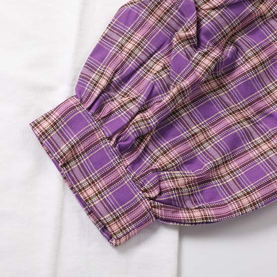 2018 행텐주니어 FW신상 여아 체크팔배색 티셔츠입니다. 항아리 소매로 여아의 귀여움을 강조한 스타일입니다. | |
