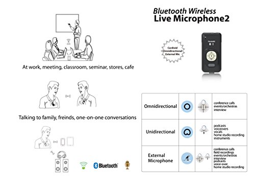 * The default voice or video recording apps of iPhone/iPad/Android DO NOT SUPPORT Bluetooth microphone. Users NEED TO use the voice recording apps with Bluetooth microphone supporting such as "Voice Recorder HD", "audio memos ", "Easy Voice Recorder Pro", "ReadyMIC", "Captures" and more...