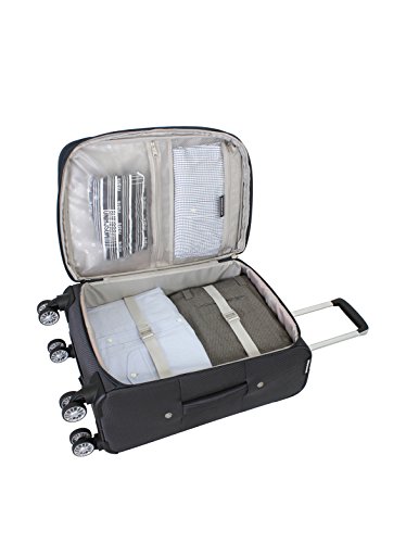 -. Feature : Exclusive Lightweight Telescopic Handle / Eight 360 degree Multi-Directional Wheels / Reinforced Lightweight Carry Handles / Expands 1.5 for Additional Packing Space / Interior Zippered Mesh Pocket