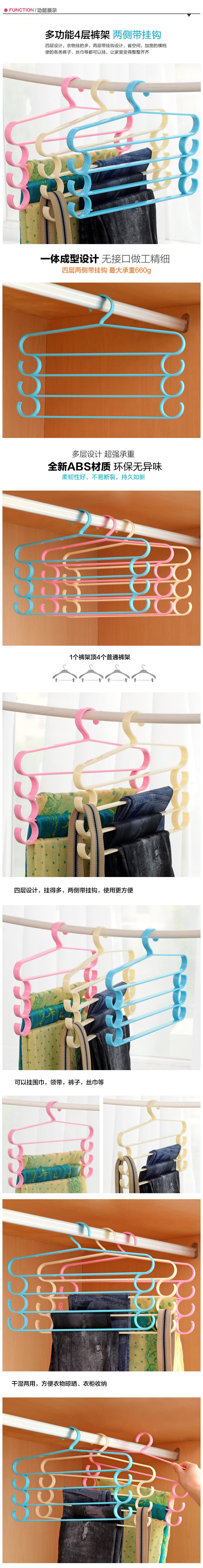 两侧带挂钩多功能裤架 领带皮带挂架 超强承重多层衣架