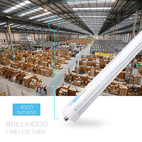 Brillihood 40w T8 T10 T12 8FT LED Tube Light, Single Pin FA8 Base, 6000K Cool White, 4500 Lumens, Fluorescent Bulb Replacement, Clear Cover, Dual-Ended Power (Pack of 10)