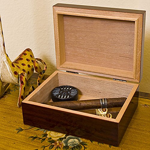The Asti 15-Stick Travel Humidor is Great for Vacations If you are going to be heading out on vacation soon, or if you are a business traveler, you might want to bring along some of your favorite cigars. This humidor is a nice choice for any traveler, and it looks great sitting on a desk in the den or office too. The humidor features a classic design and a cherry finish that will look great no matter where you decide to keep it. The lid opens on brass piano hinges and the box is lined with kiln dried Spanish cedar. The bottom of the travel humidor features scratch resistant felt lining. The travel humidor can hold between 10 and 15 cigars. The outside of the humidor measures 7 3/4" W x 6" D x 3" H. Any cigar smoker who travels a lot will love to have this handy humidor as a travel companion. It can make a great gift item. The humidor does not come with any cigars. 0 |