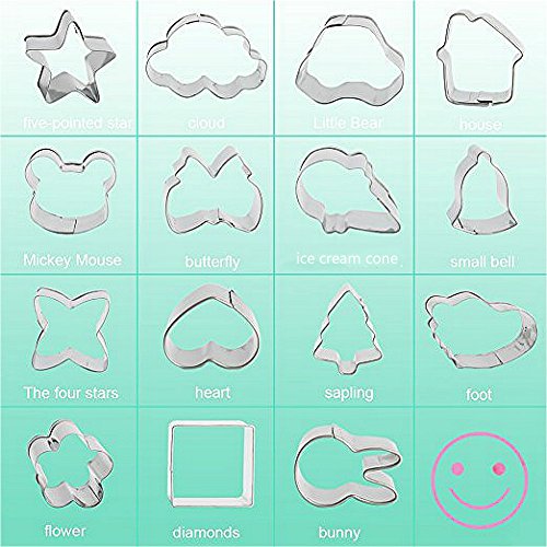 UBLISS Mini Cookie Cutter Set,15 Piece Fruit Biscuit Cutters,Multi Vegetble Animal Fruit Cutter Shapes for Kids