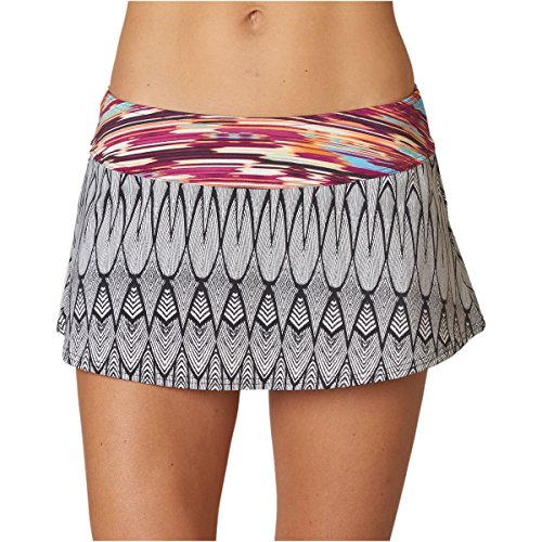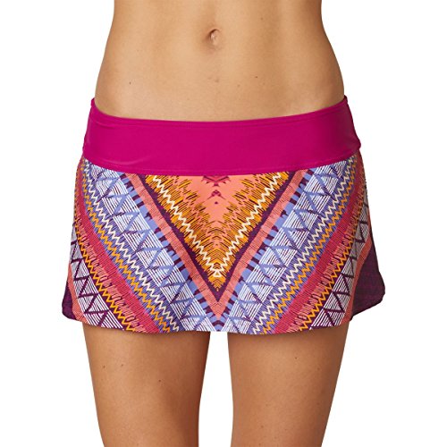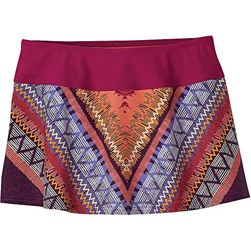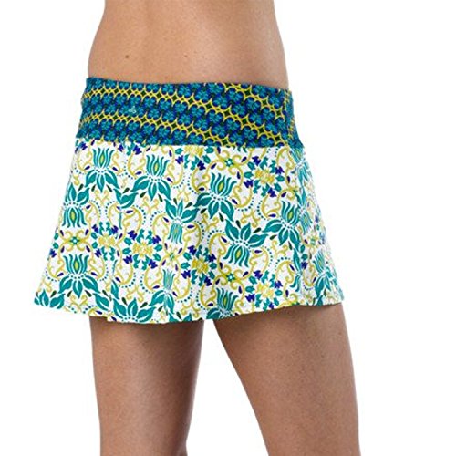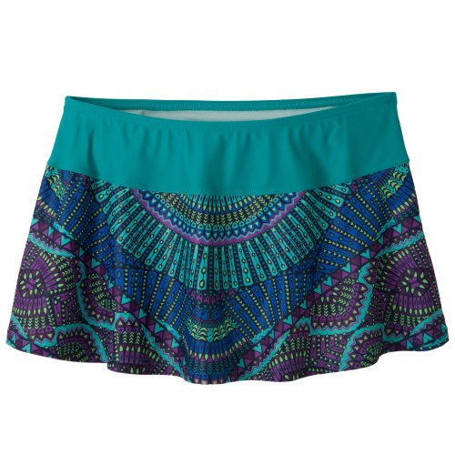 FEATURES of the Prana Women's Sakti Swim Skirt Flirty swim skirt with fully lined swim bottom attached Supportive and flattering waistband with elastic at top edge UPF 50 rating Swim brief has moderate seat coverage Stretch: Stretch fabrication extends, expands and contracts to move with you allowing for ultimate flexibility during any sport, activity or movement UPF (Ultra Violet Protection Factor): The protection given to the skin by a fabric is indicated by its UV Protection Factor (UPF) Specifically designed to block the sun's harmful UV radiation from damaging the skin (widely known as UVA/UVB/UVC rays) Quick Dry: Water resistant, these products keep moisture on the fabric's surface making it easy for the sun and/or air to lift moisture out and promote evaporation SPECIFICATIONS of the Prana Women's Sakti Swim Skirt Classic leg cut Low rise Solids and Wet Prints: 82% Nylon / 18% Spandex Paper Prints: 80% Polyester / 20% Spandex 5.6 oz/sq ydFeature