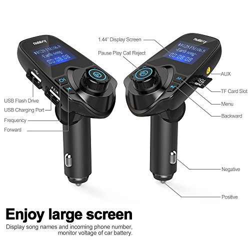 FM Transmitter, Nulaxy Wireless Bluetooth FM Transmitter Car Kit Radio Receiver W 1.44 Inch Display 2.1A USB Car Charger MP3 Player Read Micro SD Card and USB Flash Drive