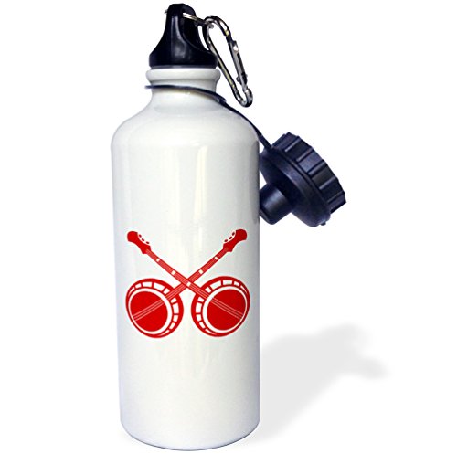 3dRose wb_164249_1 "crossed banjos red" Sports Water Bottle, 21 oz, White