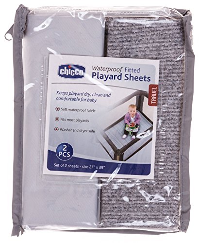 Studio : Chicco Publisher : Chicco Binding : Baby Product Product Description Keeps playard dry, clean and comfortable for baby. This sheets are soft waterproof fabric. Fits most playards. Washer and dryer safe. Set of 2 sheets included. Size: 27" x 39" 0