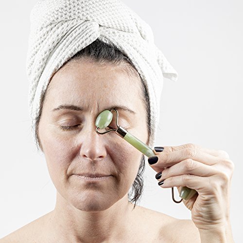 DOUBLE ROLLER DESIGN AND FASHIONABLE APPEARANCE: Jade Roller Massager With a big roller and a small roller. The big one could be used to massage your face and rejuvenate puffy face and neck skin, the small one could be used as a jade eye roller.