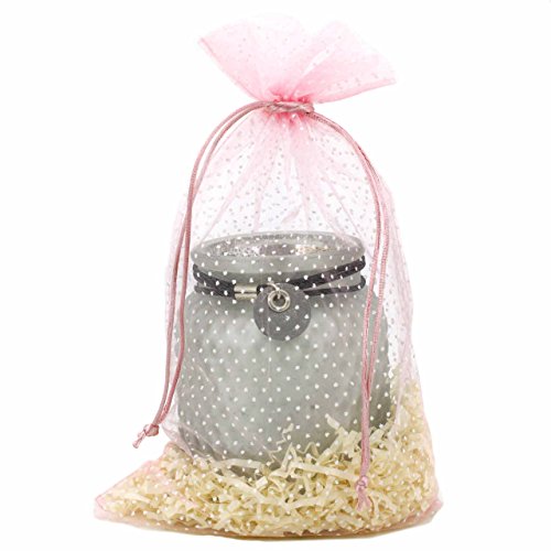 Cute Polka Dot Party Favor Gift Bags Organza Fabric Drawstring Bags (Pink Polka Dot, Medium - 12 x 7)