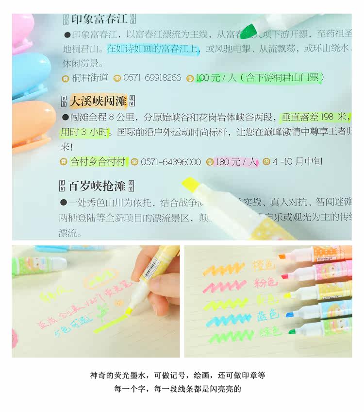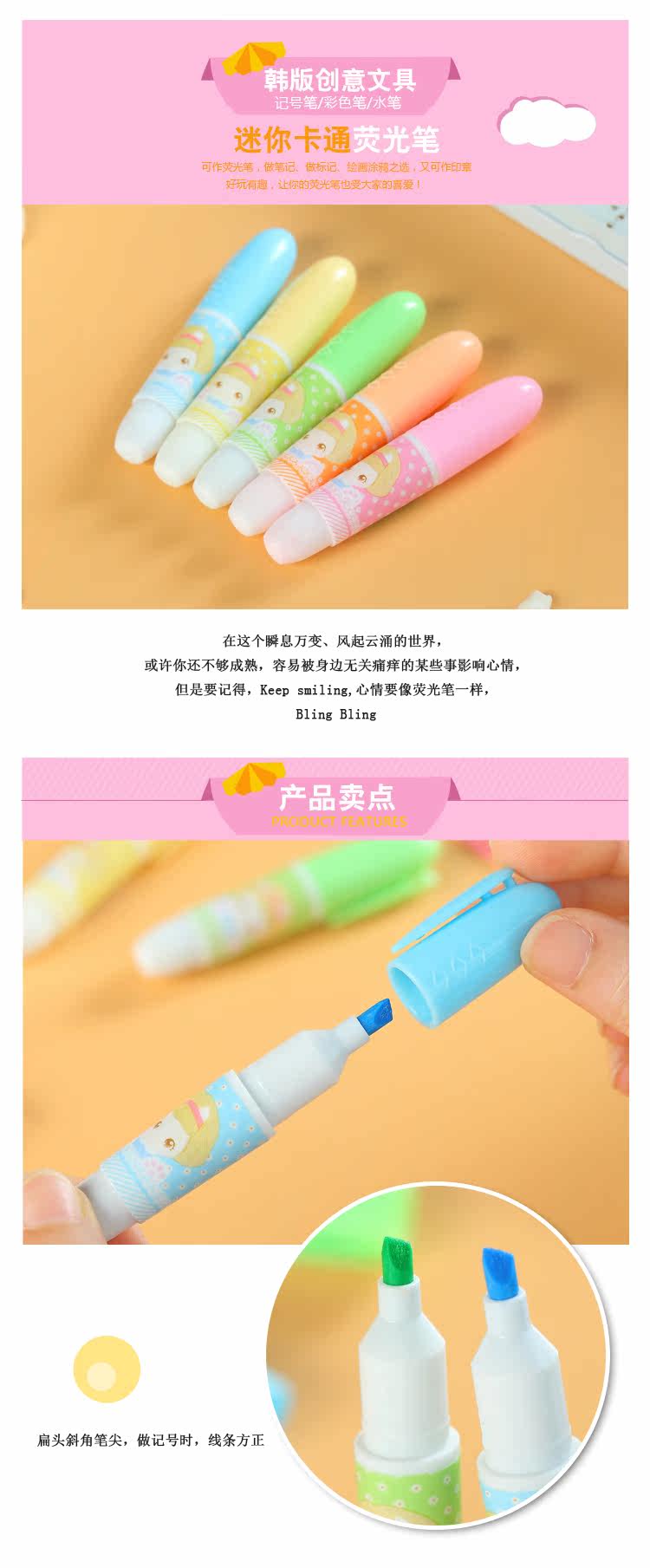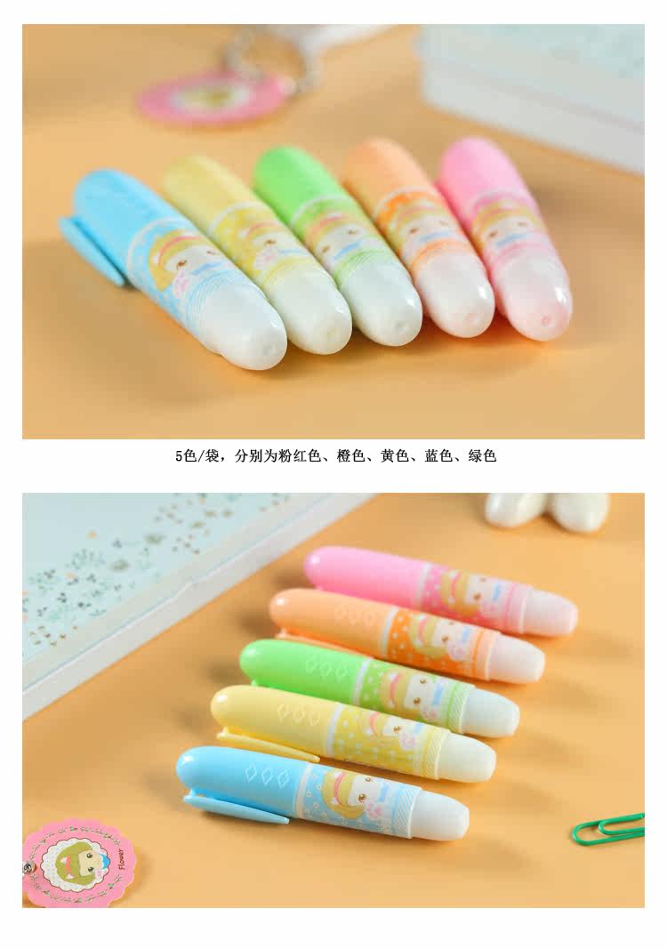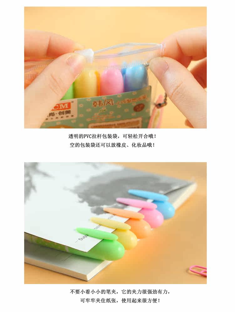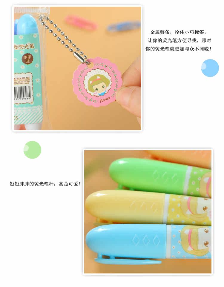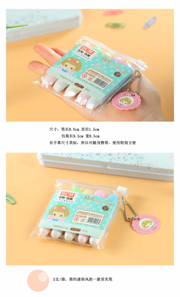 至尚创美迷你小巧荧光笔水果味学生彩色荧光重点标记笔 5支套装