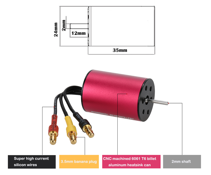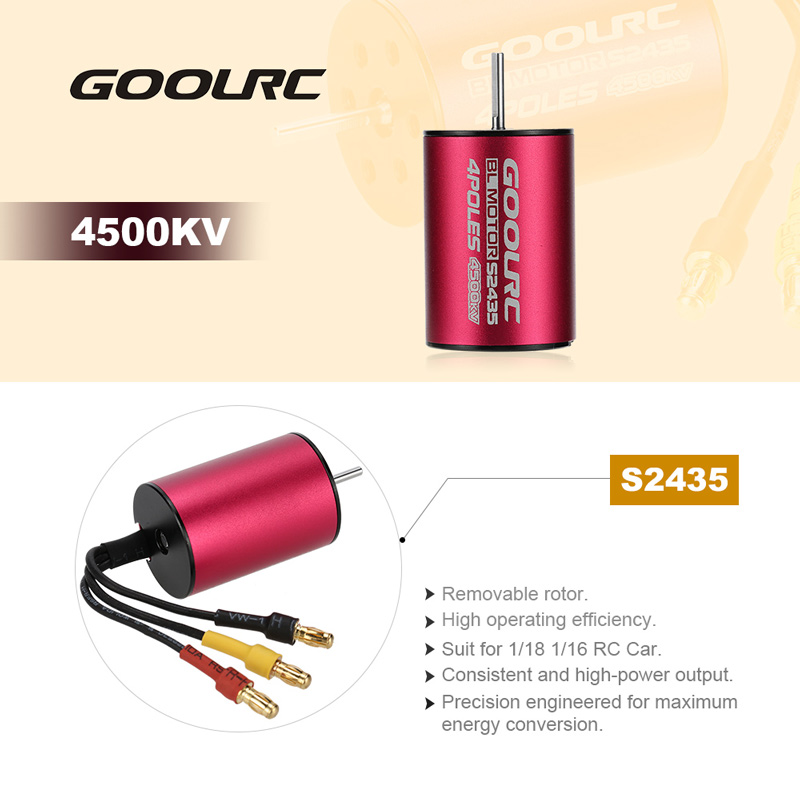 The GoolRC S2435 4500KV sensorless brushless motor is designed to provide both quality and performance at an affordable price. It is built from high quality aluminum alloy which is produced from the latest CNC milling machines, and is designed with high power and rotation speed to provide longer run time.