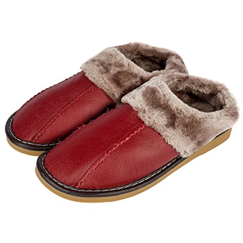 -. Feature : MATERIAL:Genuine cow leather, faux fur & rubber sole. / COMFY AND WARM: A pair of ladies house slippers that will treat your feet like royalty. These faux fur-lined woman's winter slippers have a soft furry collar and lining along with a heel cushion that will never fail to keep your feet warm and cozy either you are in your bedroom or front porch. / IDEAL FOR BOTH INDOOR AND OUTDOOR USE: The cow leather slippers can be worn around the house, bedroom, spa or beauty salon and their slip resistant rubber sole makes them suitable even for outdoor use. Cute yet reliable, these faux fur lining slippers are the best choice when it comes to comfortable and durable house wear. / SIZE & COLOR OPTIONS: Available in your choice of Wine red, Orange, Purple & Red, as they come in a wide range of sizes: US 6.5 & US 7.5. We also have the similar style winter and summer slippers in our store. Just click our brand name or directly search. / GREAT GIFT FOR FAMILY: Casual style, Suits for all your family and friends, A high quality winter indoor slippers for living room, bedroom, house around and leisure time. Feet breadth please choose larger one size.
