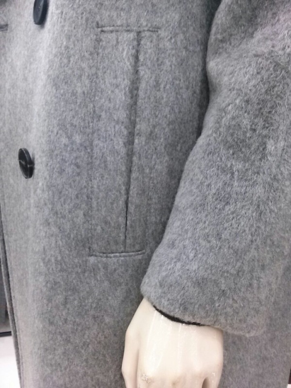 클래식한 느낌의 더블 모직코트^^메인 포켓과 와이드한 테일러드 라펠 디자인이 돋보이는 클래식 코트입니다