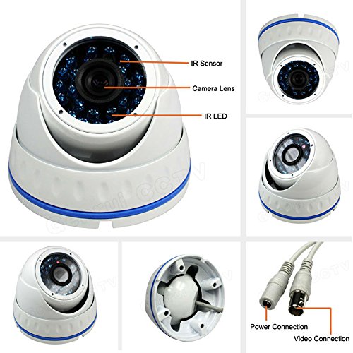SmoTecQ HD 1200tvl Dome Security Camera Outdoor Indoor 24 IR-Leds Day Night Vision CCTV 3.6mm Lens Wide Angle Video Surveillance System