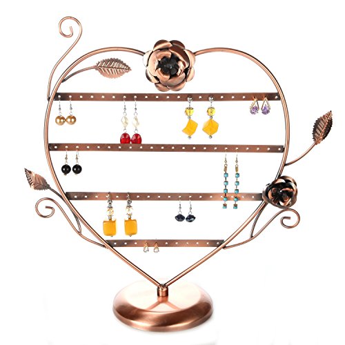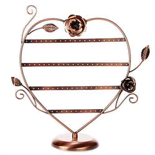 ARAD Heart Shaped Earring Holder, Jewelry Stand, Rose Copper, Holds 70 Pairs