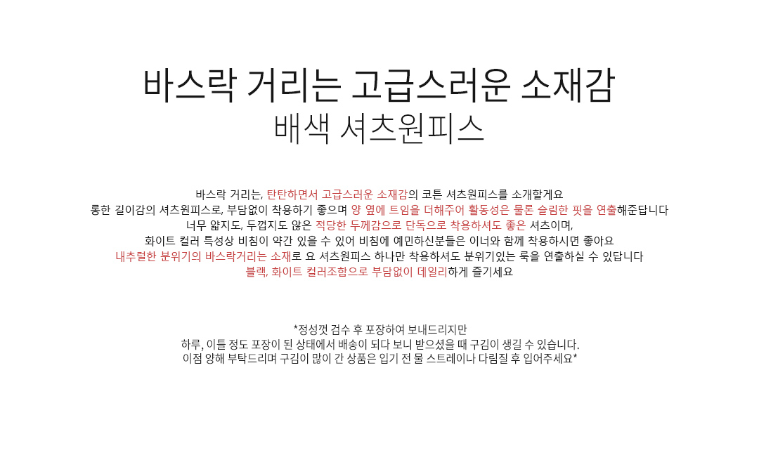 ※ 블랙컬러는 특성상 물빠짐이 있을수 있으니 꼭 ! 옷에 맞는 세탁법으로 세탁한 후 착용바랍니다.