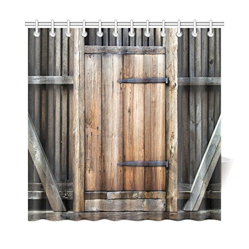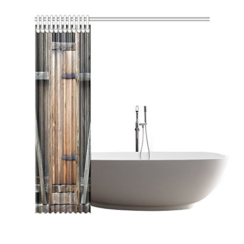 InterestPrint Farmhouse Brown Bathroom Curtains, Rustic Antique Wooden Door Exterior Facade Rural Barn Timber Weathered Lodge Mildew Resistant Machine Washable Shower Curtain 72 X 72 Inches Wood Brown