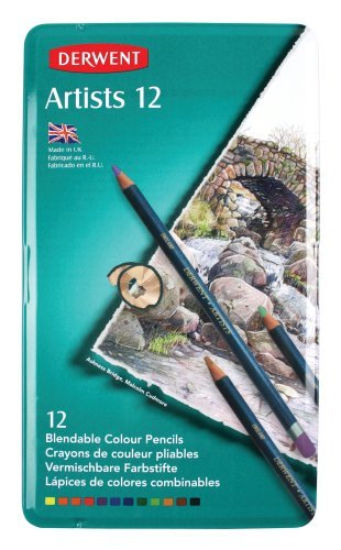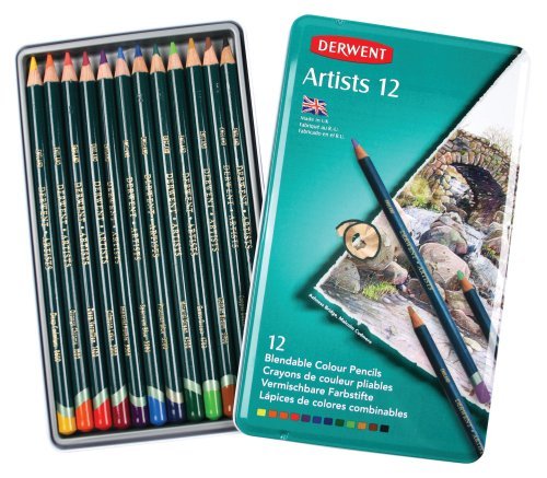 Derwent Artists Colored Pencils, 4mm Core, Metal Tin, 12 Count (32092)